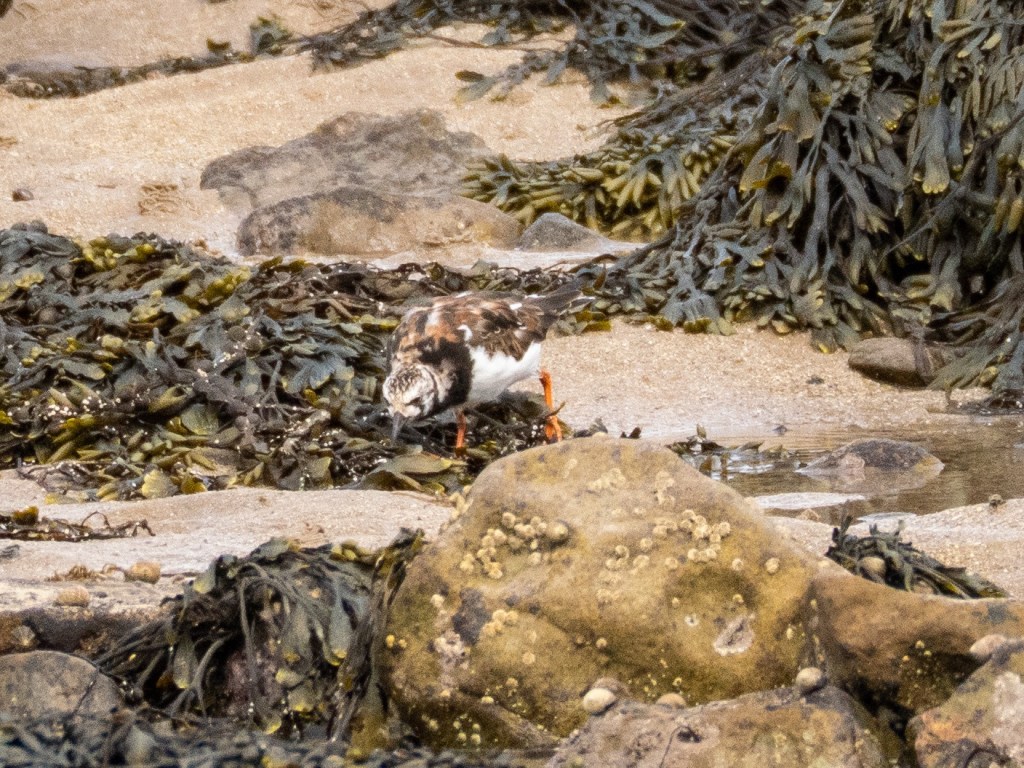 Walking back to Beadnell along the beach, I spotted Ruddy Turnstones foraging in the rock pools. They were hard to capture and the focus is not the best, but it was a first for me to see these lovely little birds.