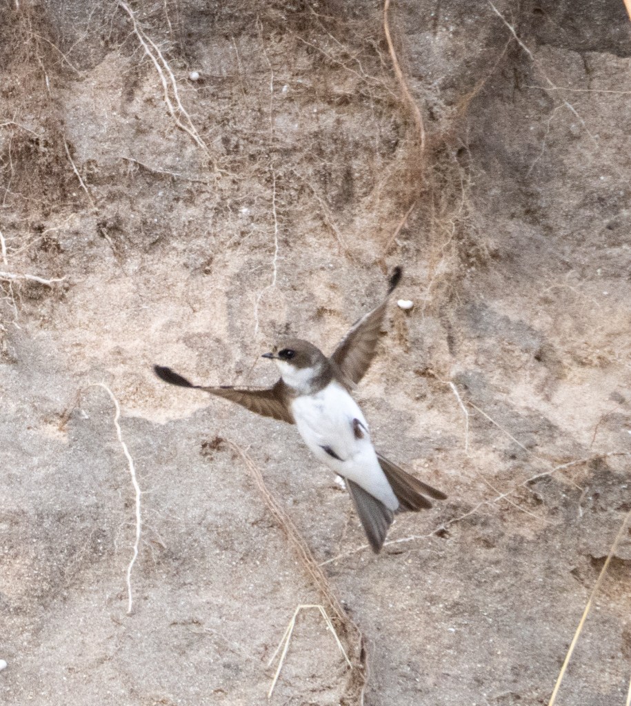 Along the beach, the sand martins were busy flitting around their burrows. They are nesting right alongside the path and do not seem to mind the hoards of walkers passing as they dance across the skies.