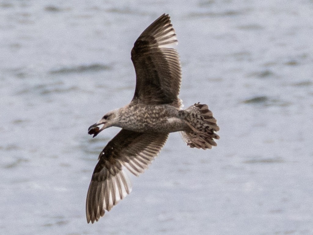 A juvenile herring gull was unlucky to drop its breakfast in the water.