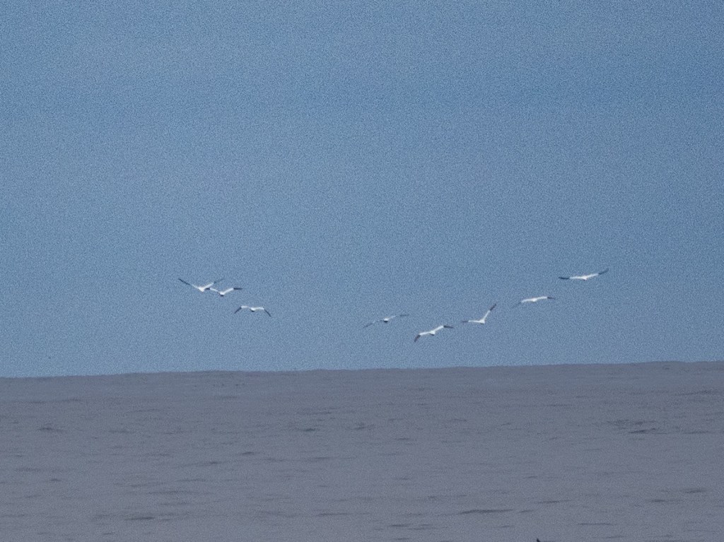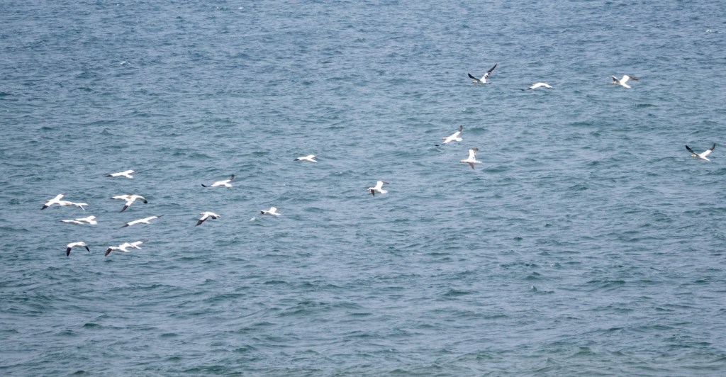 Further out to see, there were Gannets flying in flocks. Much too far out for a good shot (I can’t run with the big lens!) but you can see the distinctive markings. I was hoping they would start diving; the food attracts Minke Whales and Dolphins, but I was not that lucky today.