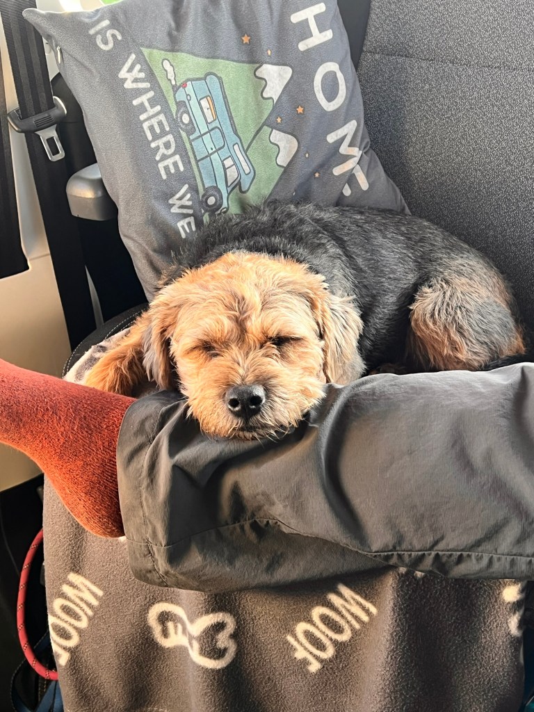 We finished Sunday evening quietly watching the sunset, with some of the local ale for him, and an English rose tea for me. Pepper retired early.
