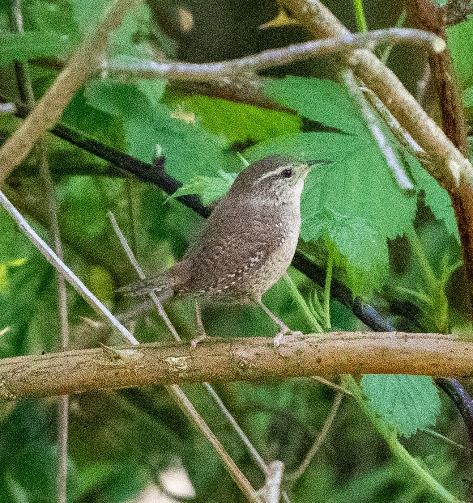 Elsewhere, along the riverside walk, the trees were full of birds foraging for their young. A wren obligingly paused to allow me to take a few photographs; usually they are much too fast.