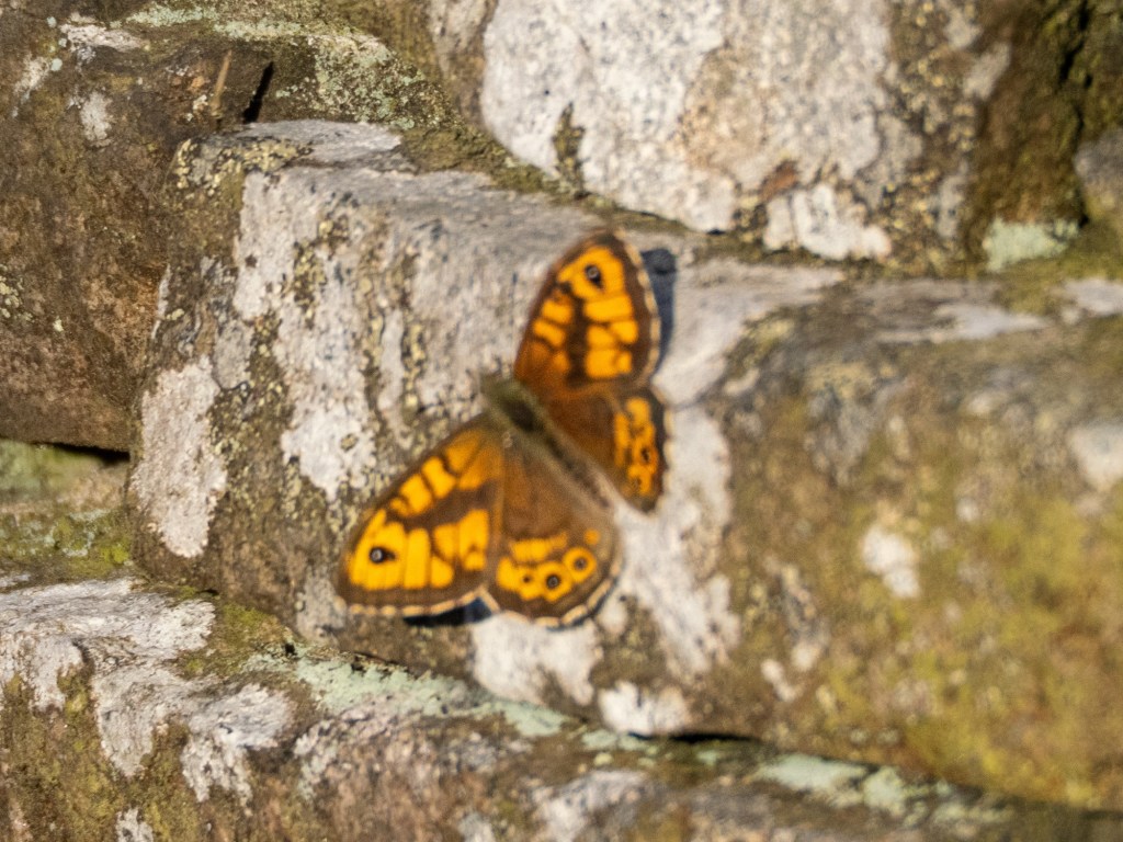 The warm weather is also bringing out many butterflies. This red admiral rested in the willows, whilst a wall brown lived up to its name and rested among the lichen covered stone.