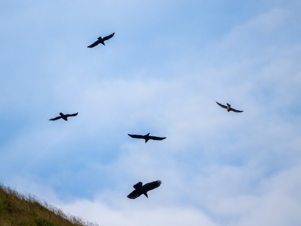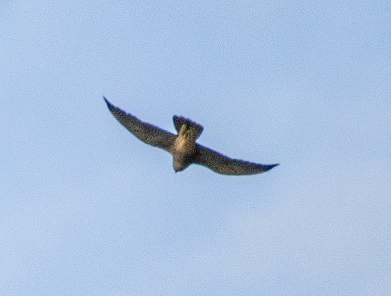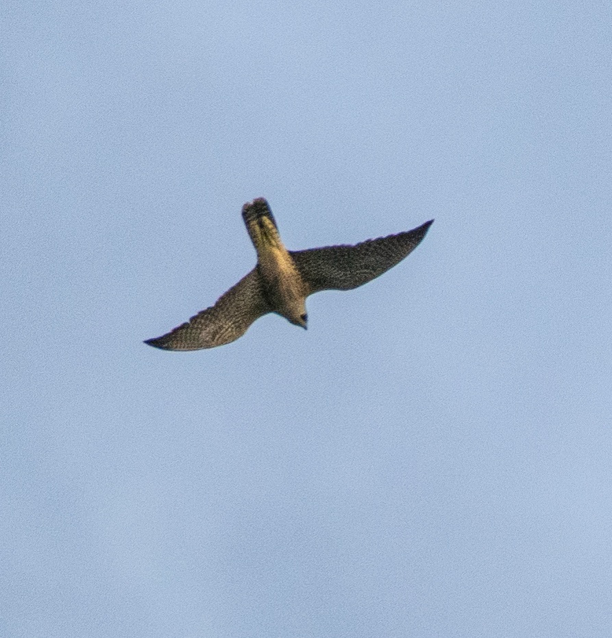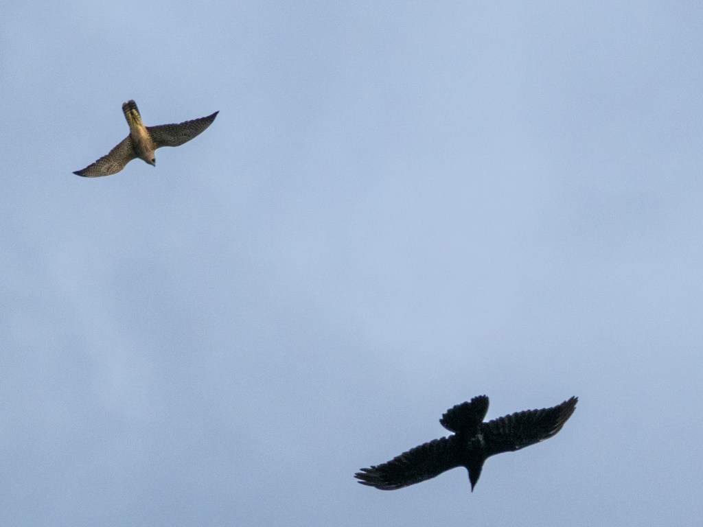 On Tuesday, I varied my usual walking route to investigate some crows mobbing another bird. I was delighted to see a beautiful juvenile peregrine standing up for itself and fighting back.