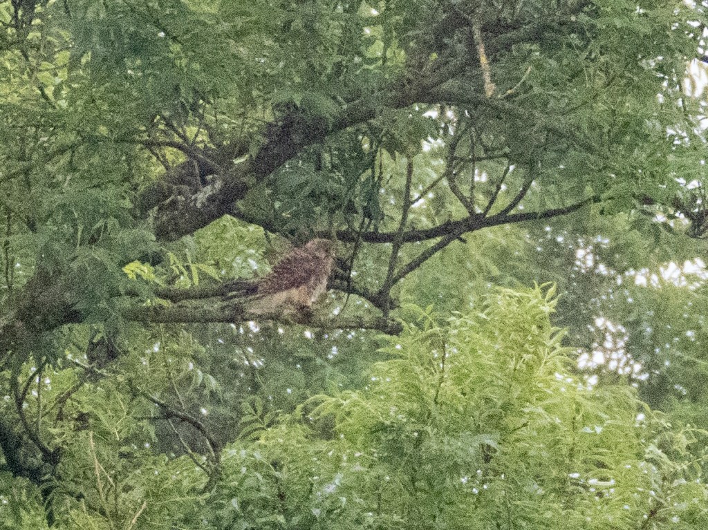 There has also been a lot of kestrels of late. the chicks have fledged and I’ve been seeing family groups hovering over the moorland as the young birds learn to hunt. This one helpfully landed just slightly out of focal range, but you can still see the distinctive barred wing feathers.