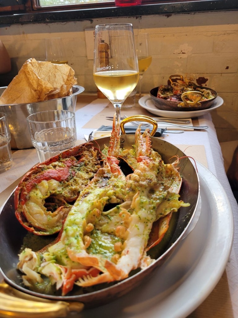 A couple of nights later, we wandered up to De Oesterput for an evening of wine and seafood. After a bit of faffing with Google Translate to decode the menu, we settled on the Four Kings of the Sea — a garlicky indulgence of crab and half a lobster. The waiter’s approving “good choice” made us smile, and we were very glad of the lobster bibs provided! Paired with a few bottles of Belgian Chardonnay, it was a perfect meal.