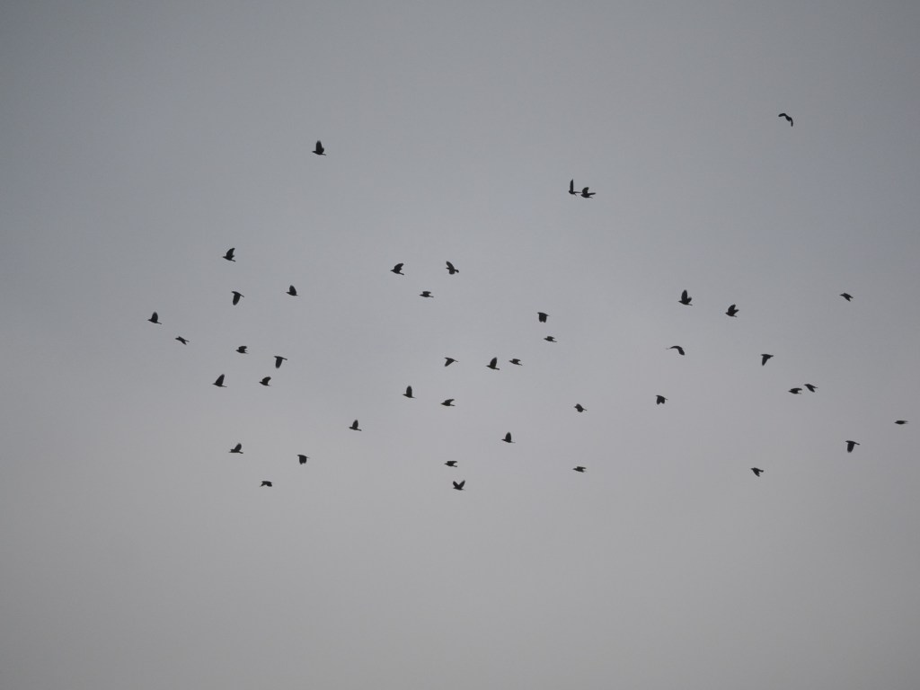 The jackdaws have been multiplying lately — a whole chattering of them roosting on a nearby chimney, their calls filling the valley at dusk.