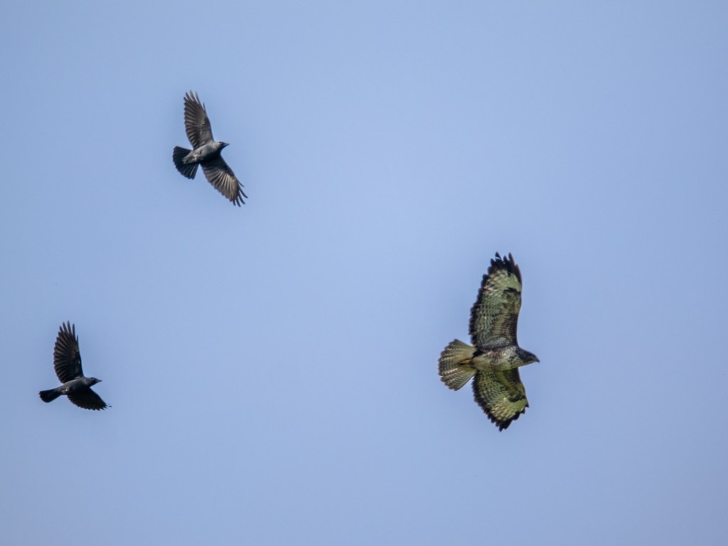 A family of buzzards circled gracefully, harried now and then by the local crows; I counted at least five individuals.