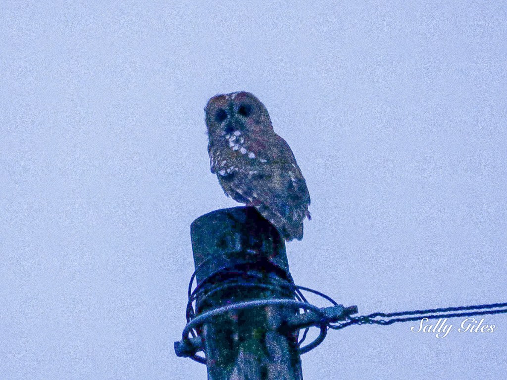 Perched upon a telegraph pole, a tawny owl watched us in silence as we climbed the hill, its round eyes unblinking in the half-light, before it swooped gracefully back into the shelter of the trees.