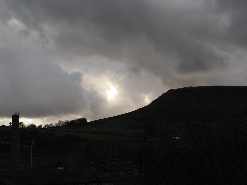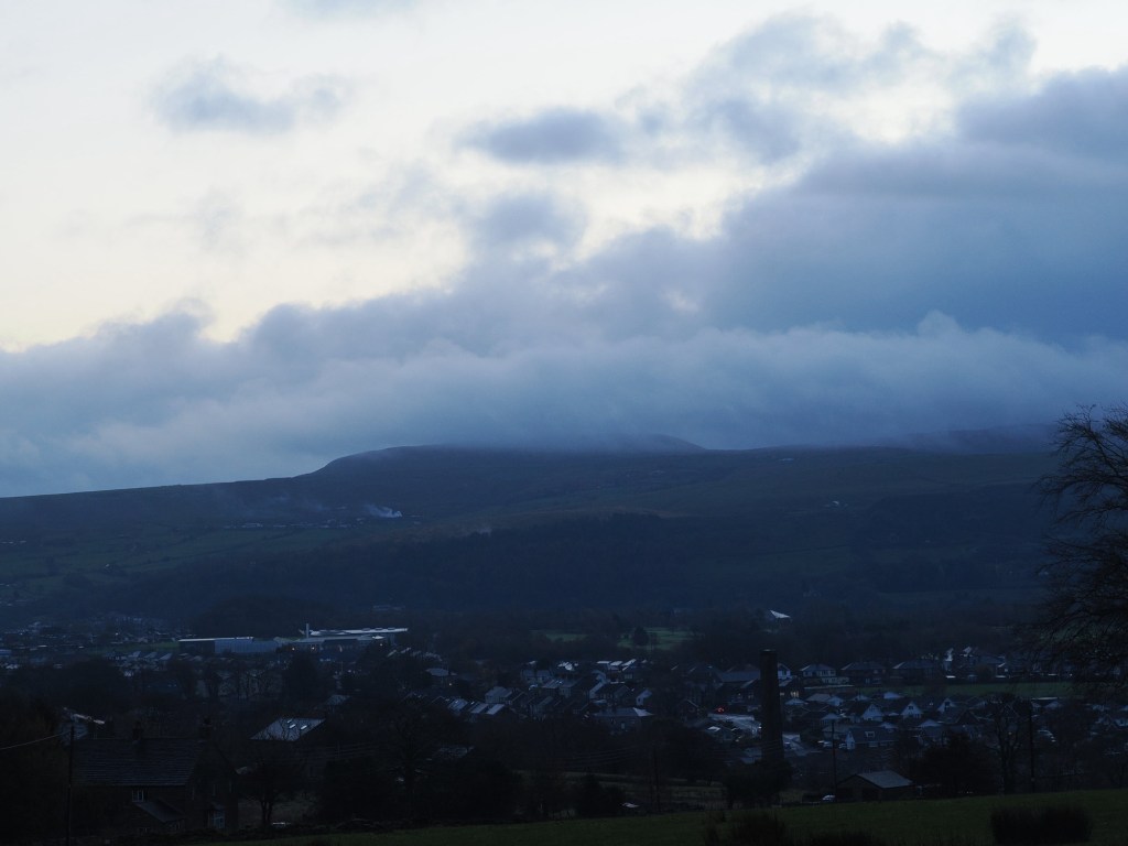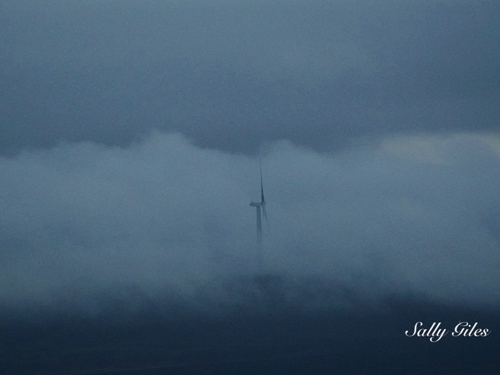 Across the valley, the “other Tor” in Cowpe was barely visible, its shape fading into a soft white shroud. The wind farm, too, was hidden beneath the low cloud, save for the occasional gleam of a turbine blade catching the sun.