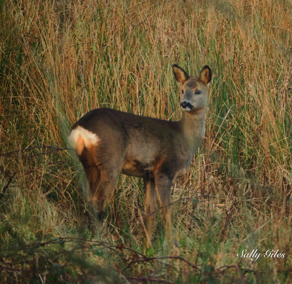 Out front, they were joined by a roe deer quietly browsing the apples I’d left in the field.