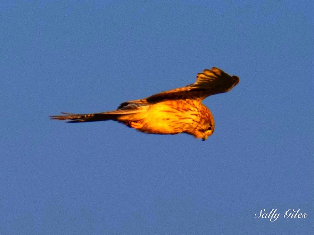 We disturbed a kestrel hunting for breakfast, which wheeled away in indignant protest as we passed.