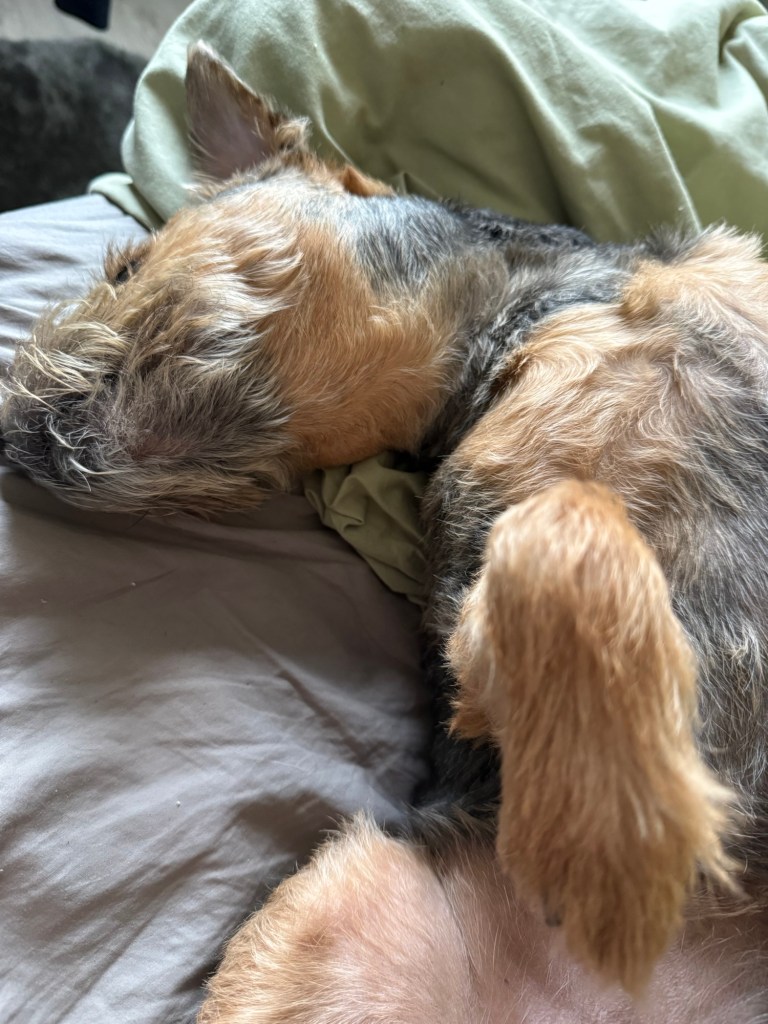 I rose early, determined to at least half-reset my body clock for the week ahead, and spent a couple of hours reading and pottering in the dark. Pepper had no such intentions. She rose regally at 8:15, once the day had properly begun, and made it clear she would not be rushed.