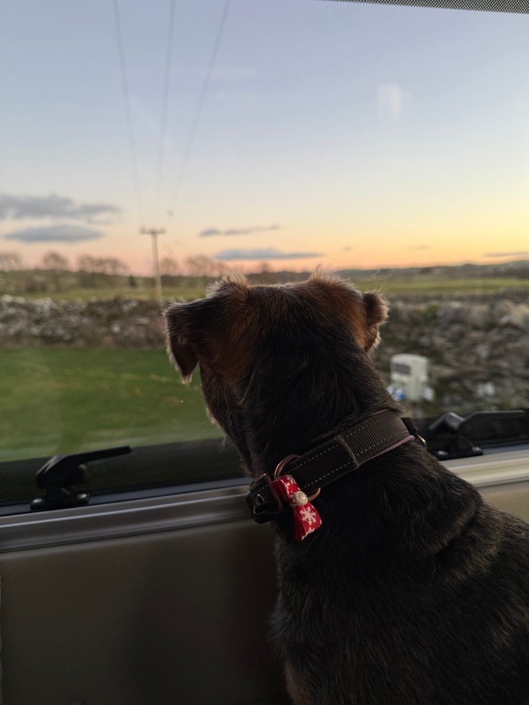 Monday was spent nesting — vans levelled, kettles boiled, and plans sketched out after a brief but enthusiastic conflab. With the next day’s walk agreed, we retired early after an evening walk with Pepper, ready to make the most of the daylight.