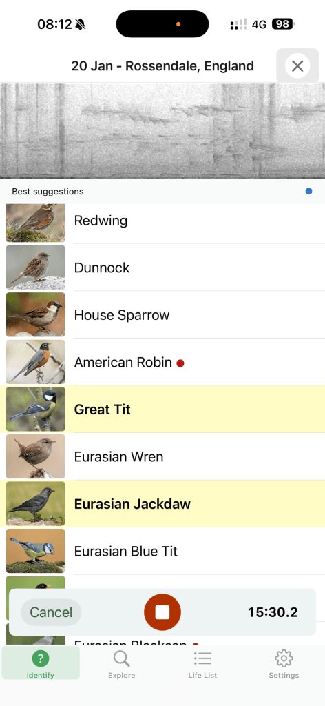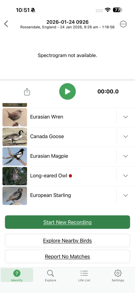 Merlin does occasionally get things wrong, but for the last couple of weeks it has been consistently claiming to hear an American robin. Ordinarily, I’d dismiss this, but it’s not just my app: a friend who walks in similar places has also had it flagged and is convinced she’s seen it. This comes hot on the heels of a news report that a European robin has been delighting people in Montreal, thought to have crossed the Atlantic by ship. Who knows — perhaps we’re in the midst of an unofficial robin exchange programme. I’ll keep watching; it could be an escapee that’s quietly settled in Helmshore.