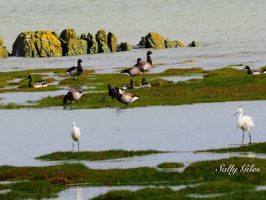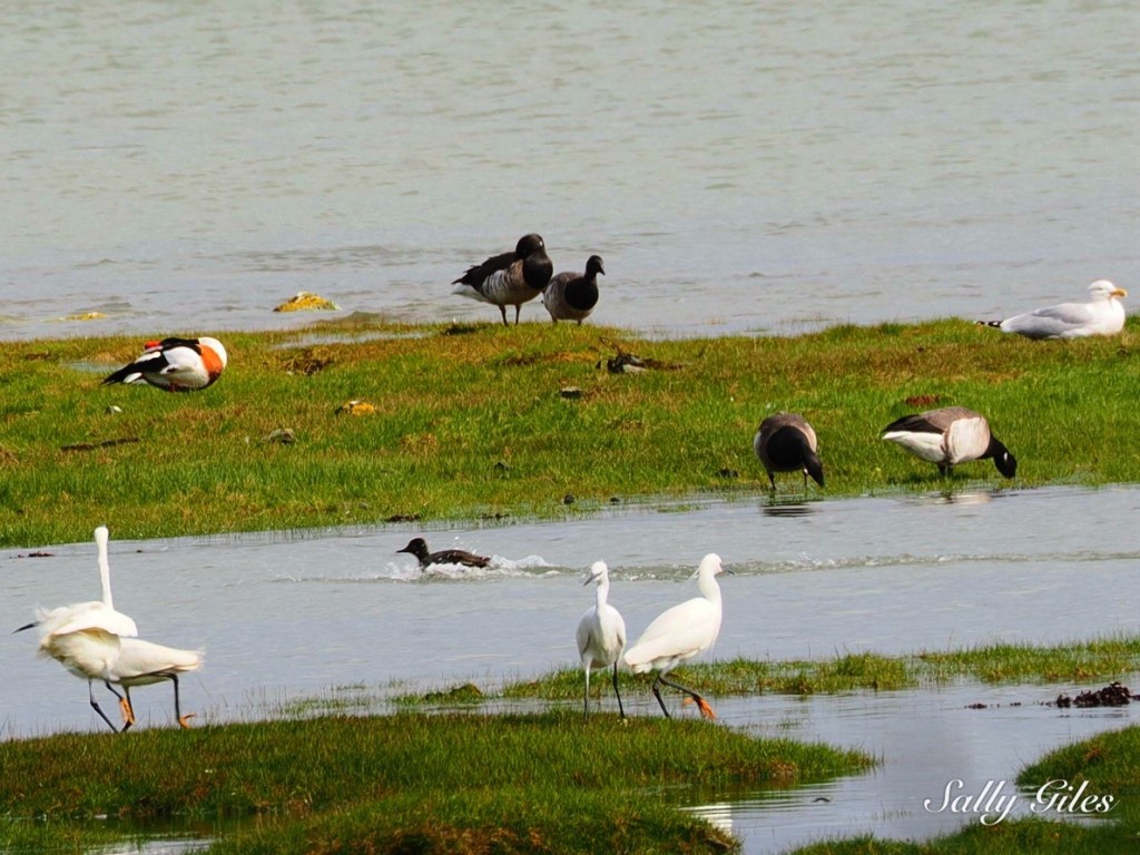 The day was bright and clear, though unsettled in that familiar coastal way — coat on, coat off, sunglasses on, sunglasses off. We followed the shoreline for a time, the water’s edge alive with movement. Egrets, ducks, geese, and other shorebirds busied themselves among the shallows, while the trees above held chaffinches, nuthatches, and the delicate flicker of goldcrests.