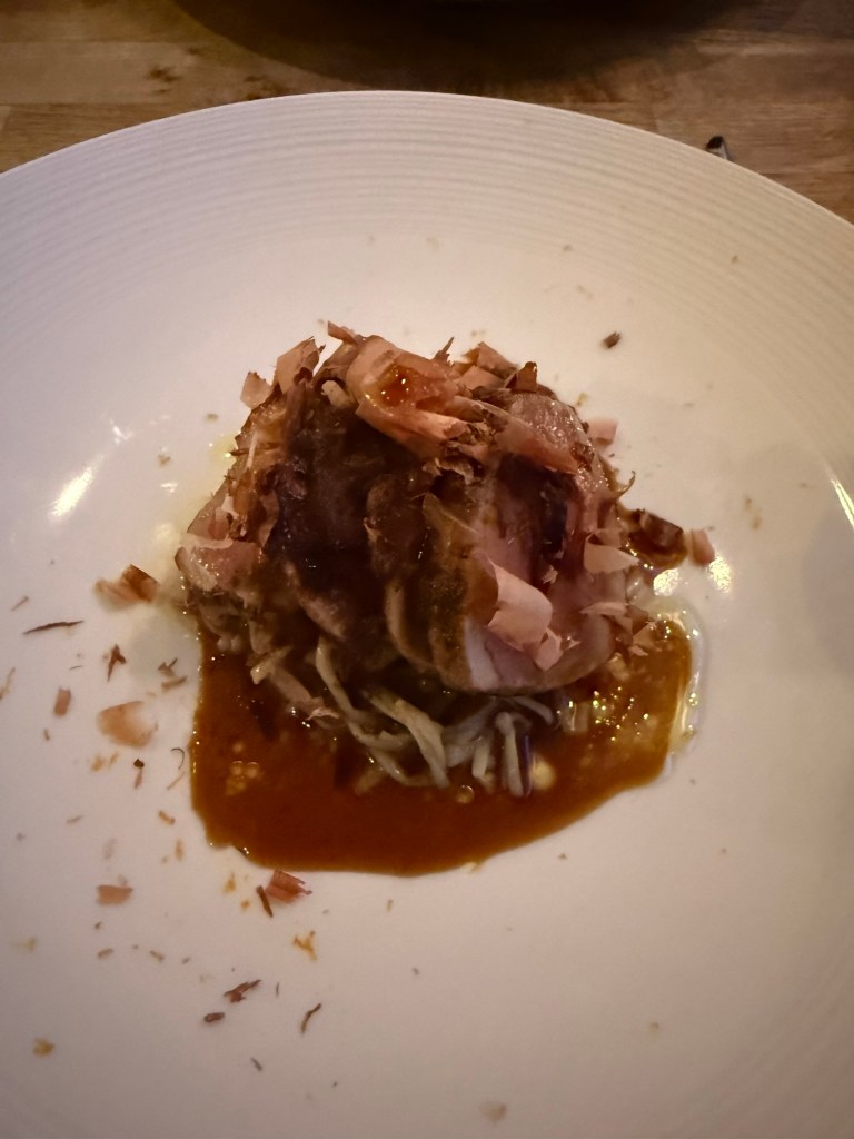 We opted for the ten-course tasting menu, paired with the matched wine flight, and spent the next few hours working our way through a series of beautifully balanced dishes — each one thoughtful, precise, and just a little surprising.